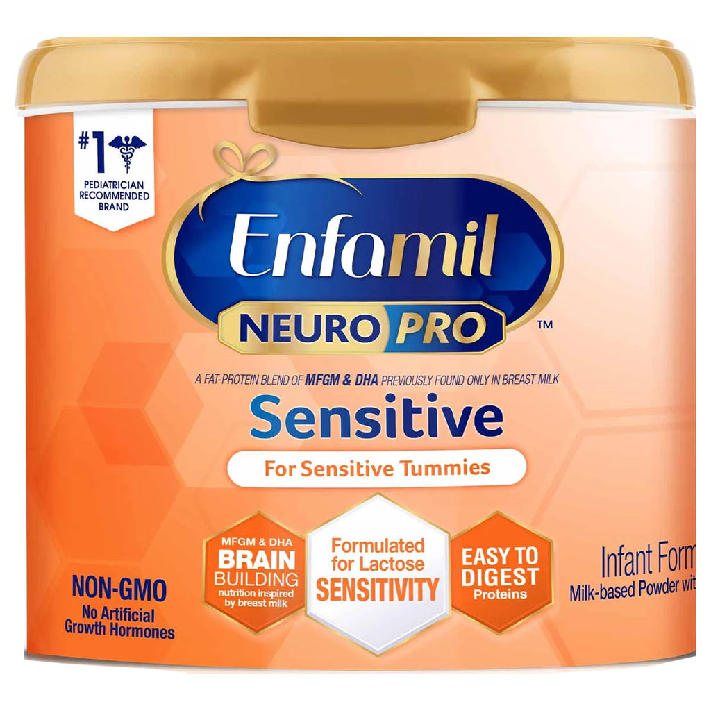 Enfamil NeuroPro Gentlease Powder, 2,770 Calories Per 19.5 oz. Tub. Enfamil NeuroPro Sensitive is a 20 Cal/fl oz, milk-based infant formula designed for sensitive tummies. It is specially formulated for infants with lactose sensitivity and has easy-to-digest proteins. Enfamil NeuroPro Sensitive has a fat-protein blend of MFGM and DHA previously found only in breast milk. Emerging evidence from a clinical study showed MFGM in infant formula supports cognitive development similar to breast milk.